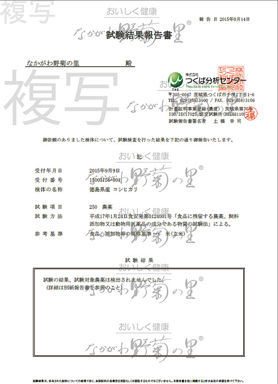 このような書類で、お米をご購入いただいた際に同梱して発送しています。